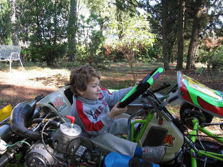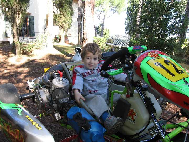 E così dopo che sono andato a vedere mio babbo in pista ed ho sentito quel "rombo" mi è venuta ancora di più la voglia di provare a guidare, ma ho dovuto aspettare il mio quinto compleanno, quando ho avuto la grandissima sorpresa del mio primo go-kart.